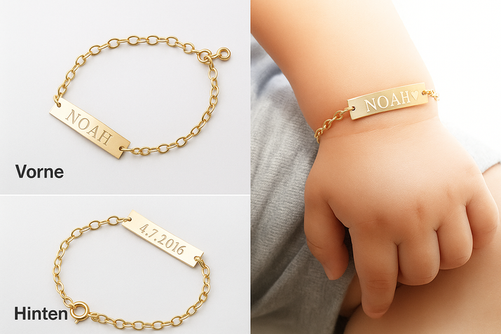 Das personalisierte Namensarmband feiert die Ankunft eines neuen Lebens und zeigt klare Bedeutung. Es eignet sich für dein eigenes Baby oder für ein Kind eines geliebten Menschen. Die Gravur des gewünschten Namens schafft ein einzigartiges Schmuckstück das Zuneigung und besondere Momente symbolisiert. Präzise Verarbeitung bildet die Grundlage und stärkt den emotionalen Wert bei jeder Gelegenheit.